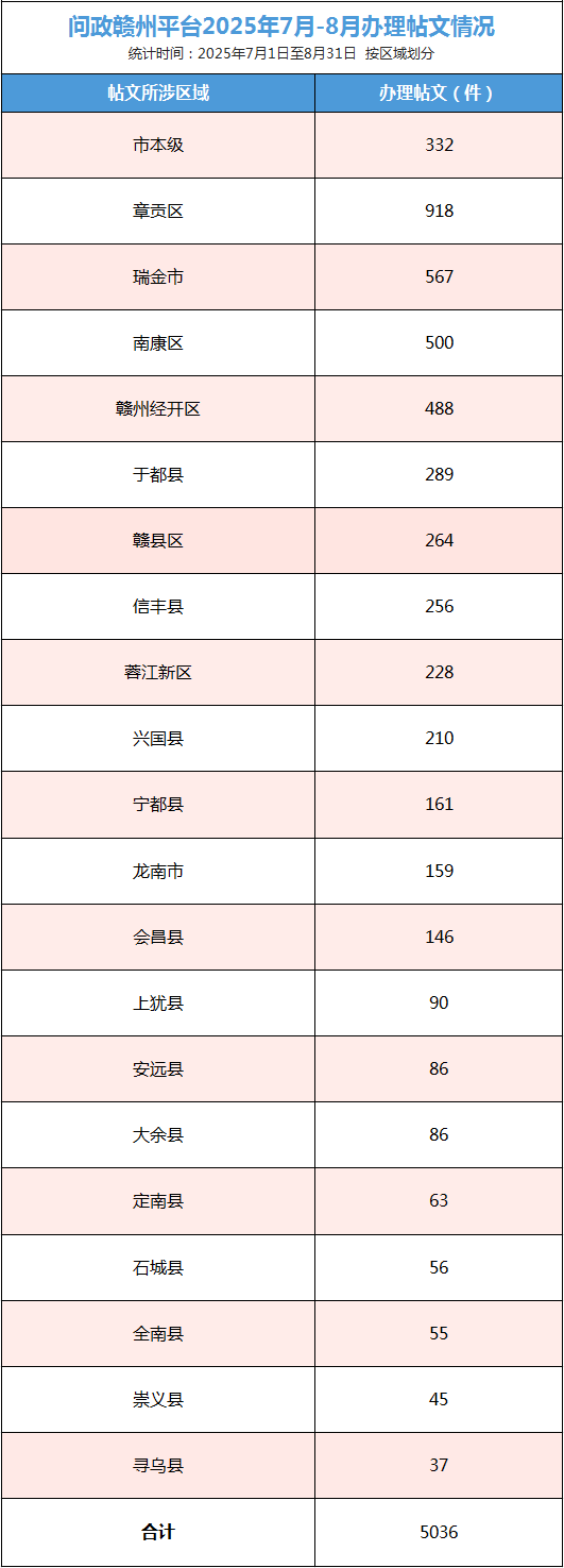 “问政赣州”网络问政平台自2019年7月10日运行以来,截至2025年8月31日,转办网友投诉咨询帖文163313件,办理回复163124件,办理回复率99.94%。